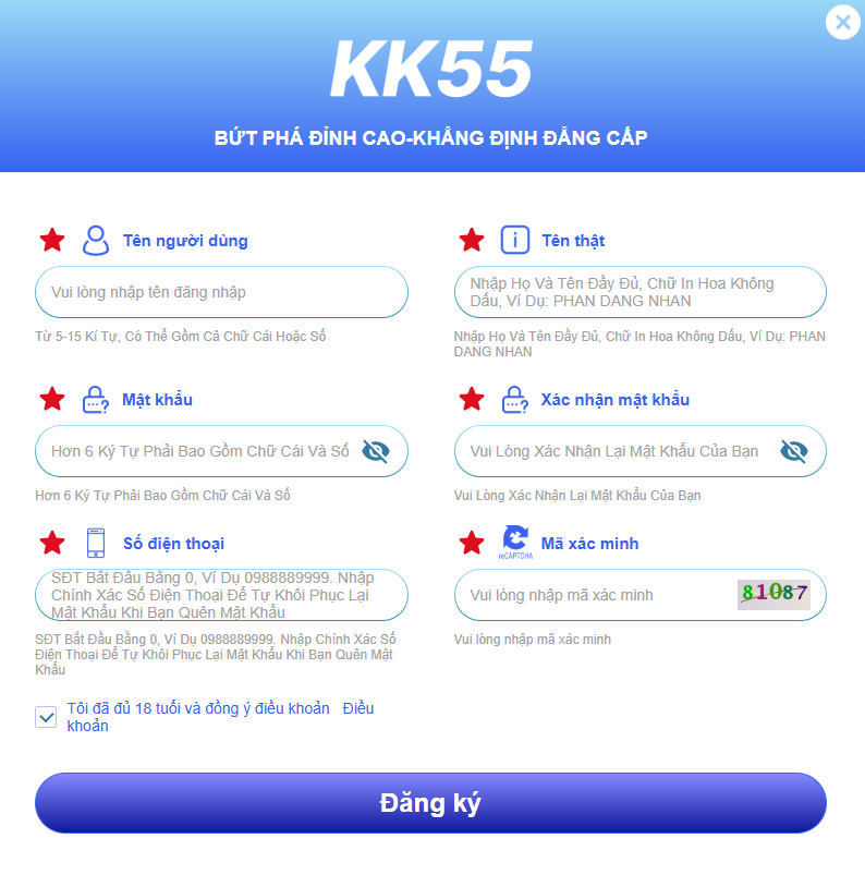 TRANG ĐĂNG KÝ CHÍNH THỨC KK55 NHẬN 58K